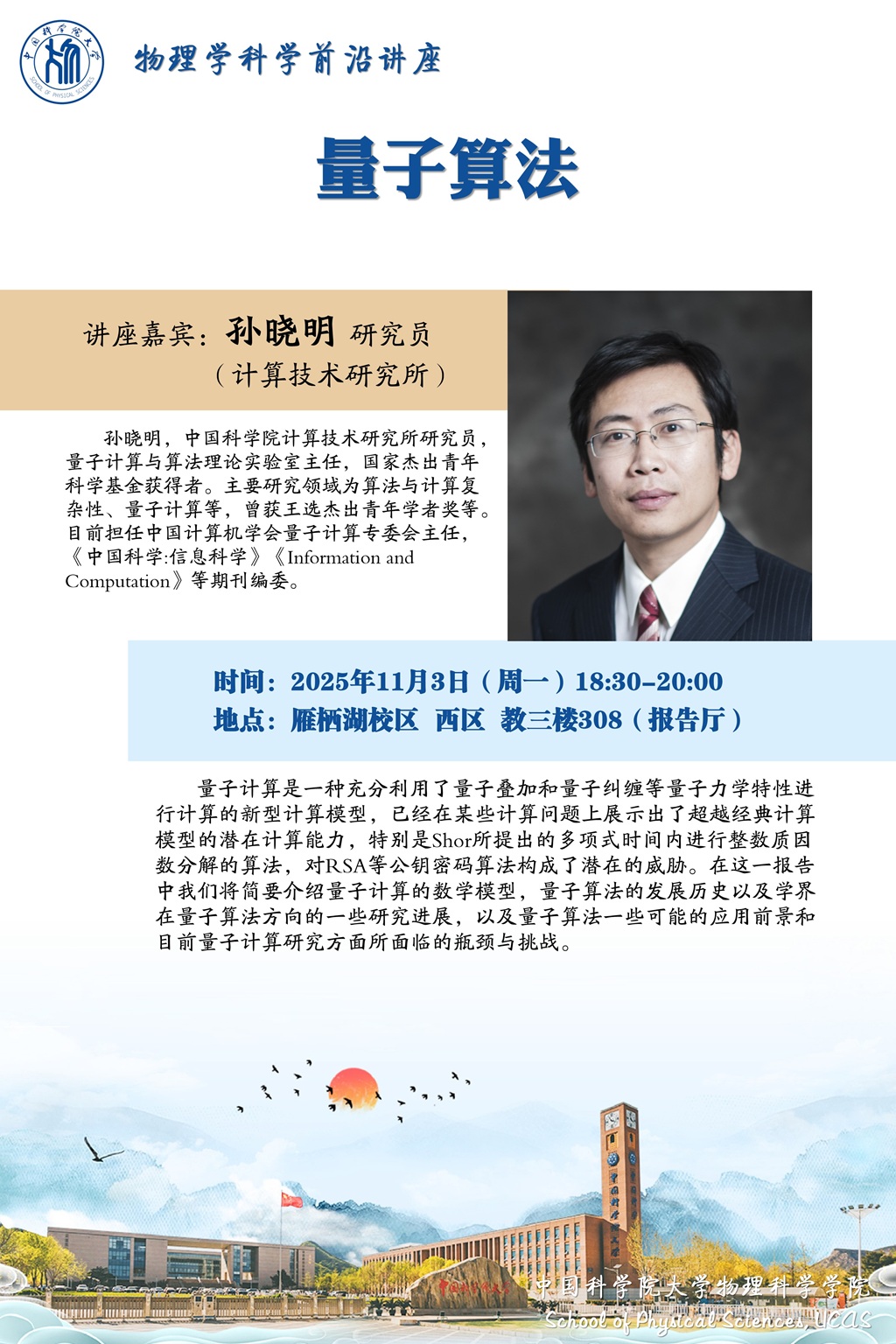 雁栖湖校区 教三楼308(报告厅)